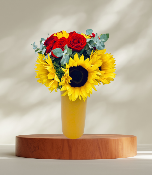 Combina este bouquet de girasoles con globos, botanas o alguno de nuestros postres. ¡Le encantará!